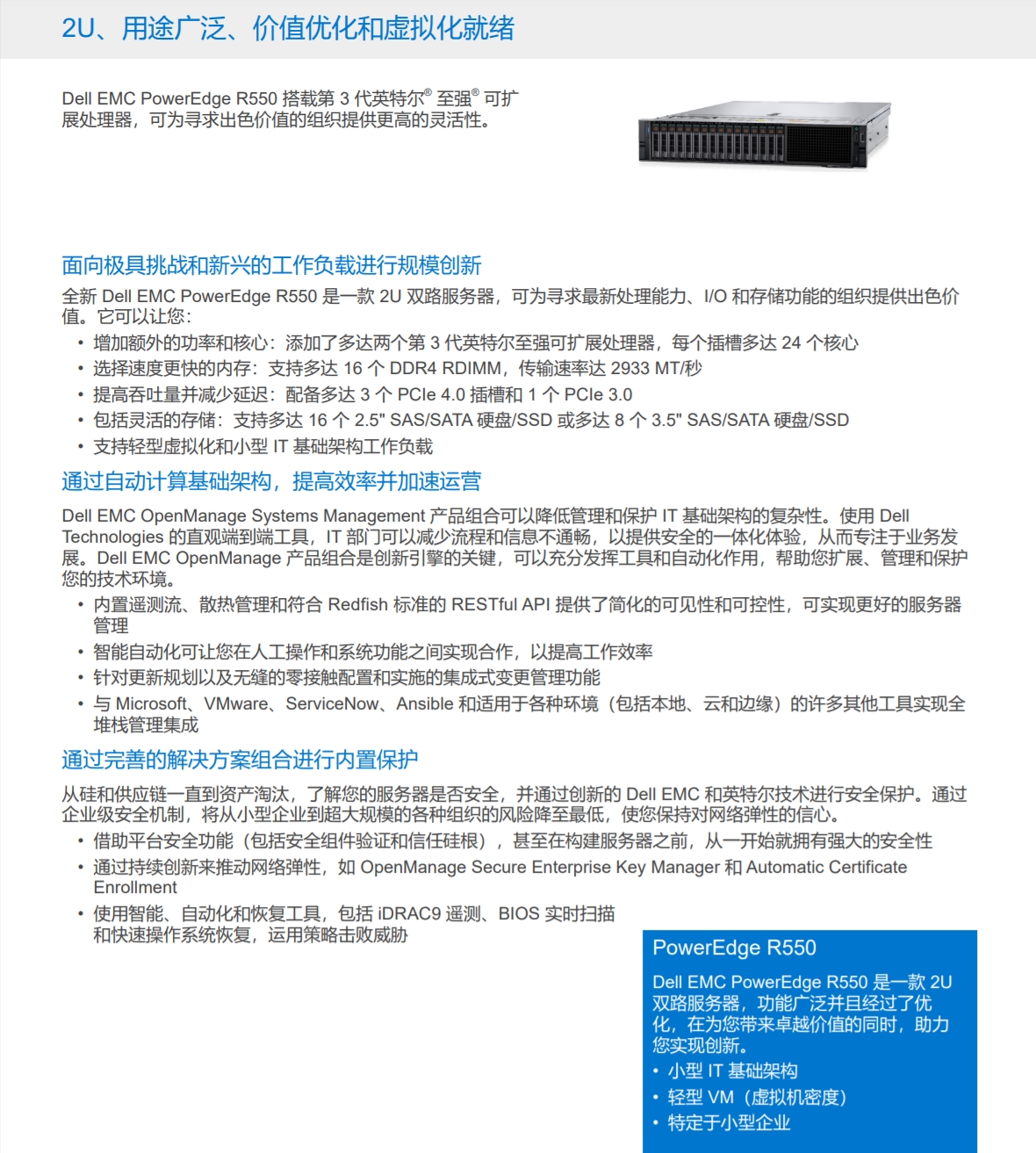 Dell EMC PowerEdge R550可為尋求出色價值的組織提供更高的靈活性。