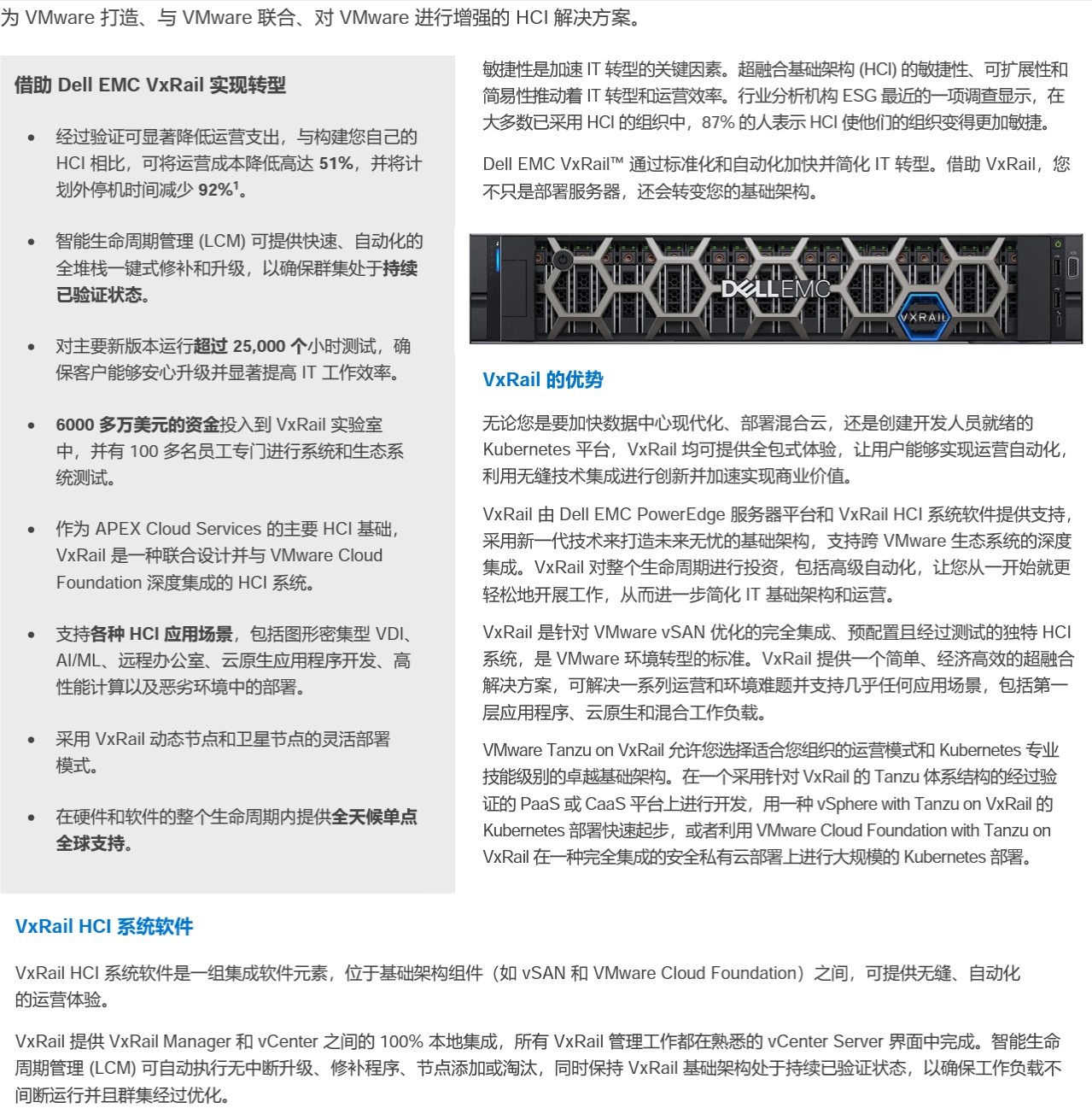 為 VMware 打造、與 VMware 聯(lián)合、對(duì) VMware 進(jìn)行增強(qiáng)的 HCI 解決方案。