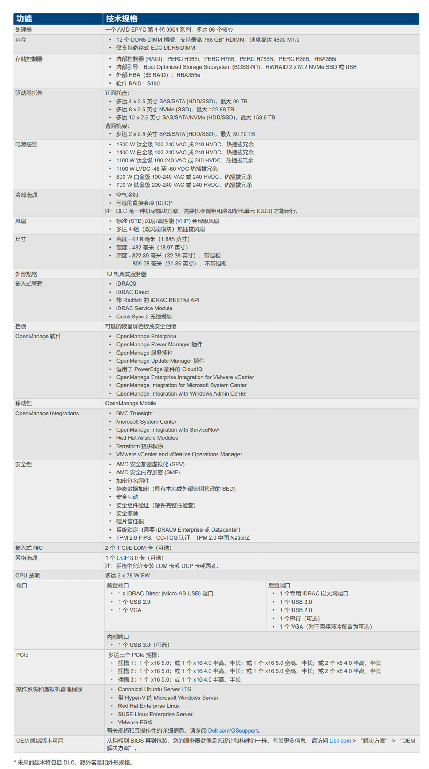 全新戴爾 PowerEdge R6615 是 1U 單路機架式服務器。這款服務器旨在為您的數(shù)據(jù)中心提供出色的每美元投資,可在空氣冷卻或直接液冷 (DLC)* 配置中提供高性能、靈活性、低延遲的存儲選項。