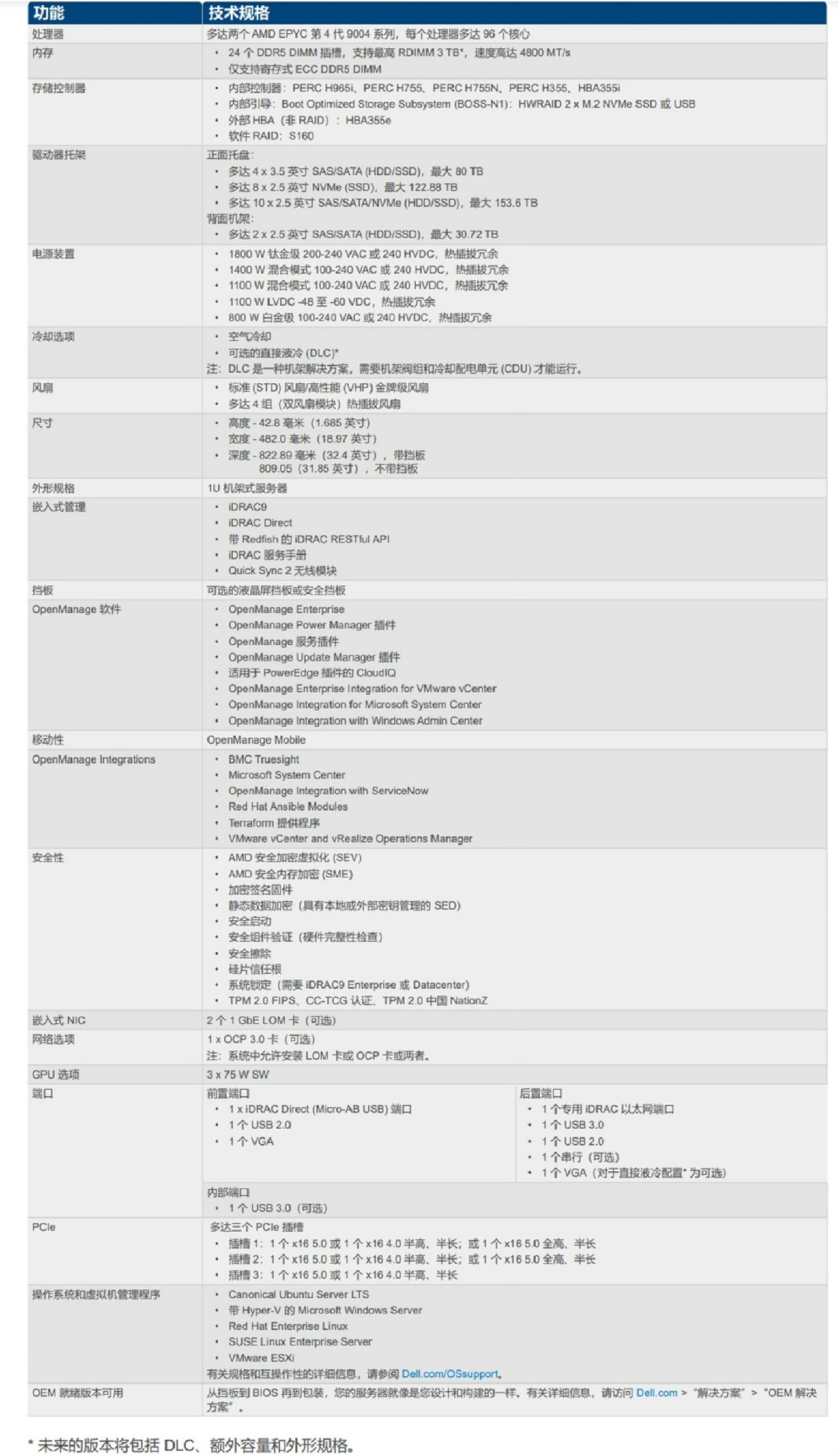 全新戴爾 PowerEdge R6625 是 1U 雙路機架式服務(wù)器。這款功能強大的服務(wù)器專為成為數(shù)據(jù)中心的主干而設(shè)計,可在稠密空氣或直接液冷 (DLC)* 配置中提供充足的性能和靈活、低延遲的存儲選項。