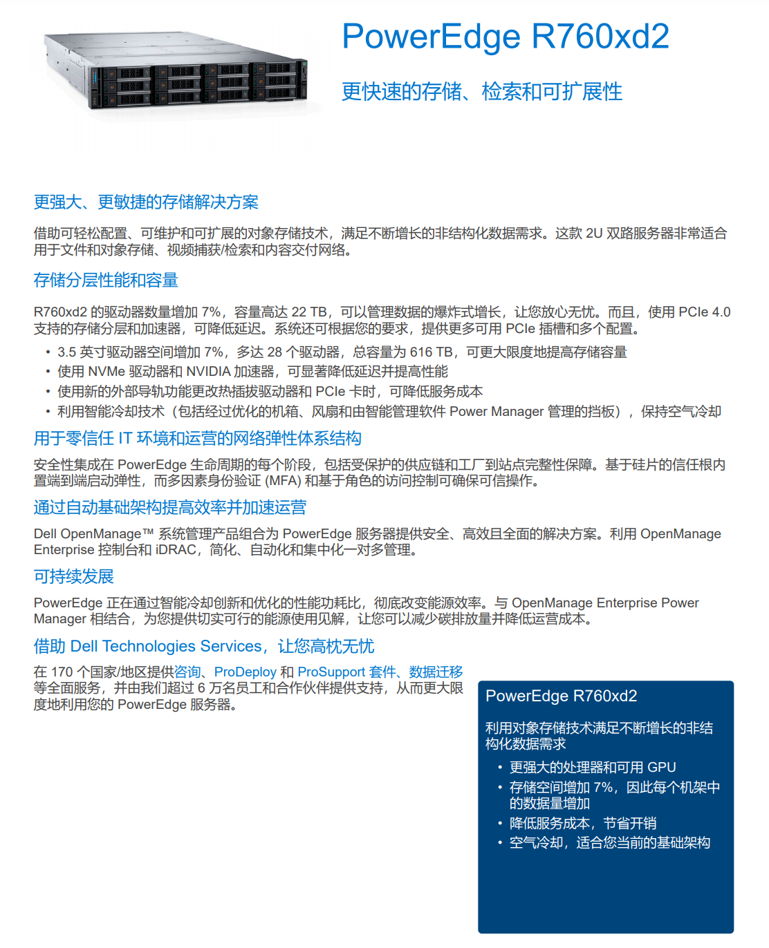 借助可輕松配置、可維護(hù)和可擴(kuò)展的對(duì)象存儲(chǔ)技術(shù),滿足不斷增長(zhǎng)的非結(jié)構(gòu)化數(shù)據(jù)需求。這款 2U 雙路服務(wù)器非常適合用于文件和對(duì)象存儲(chǔ)、視頻捕獲/檢索和內(nèi)容交付網(wǎng)絡(luò)。
