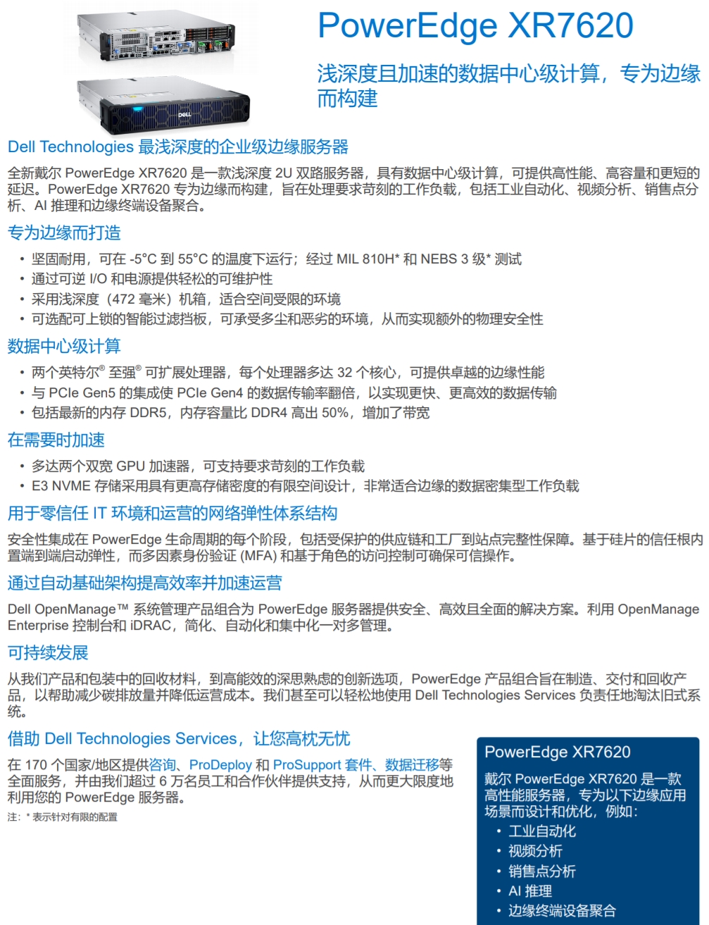 DELL PowerEdge XR7620淺深度且加速的數(shù)據(jù)中心級(jí)計(jì)算,專為邊緣而構(gòu)建。