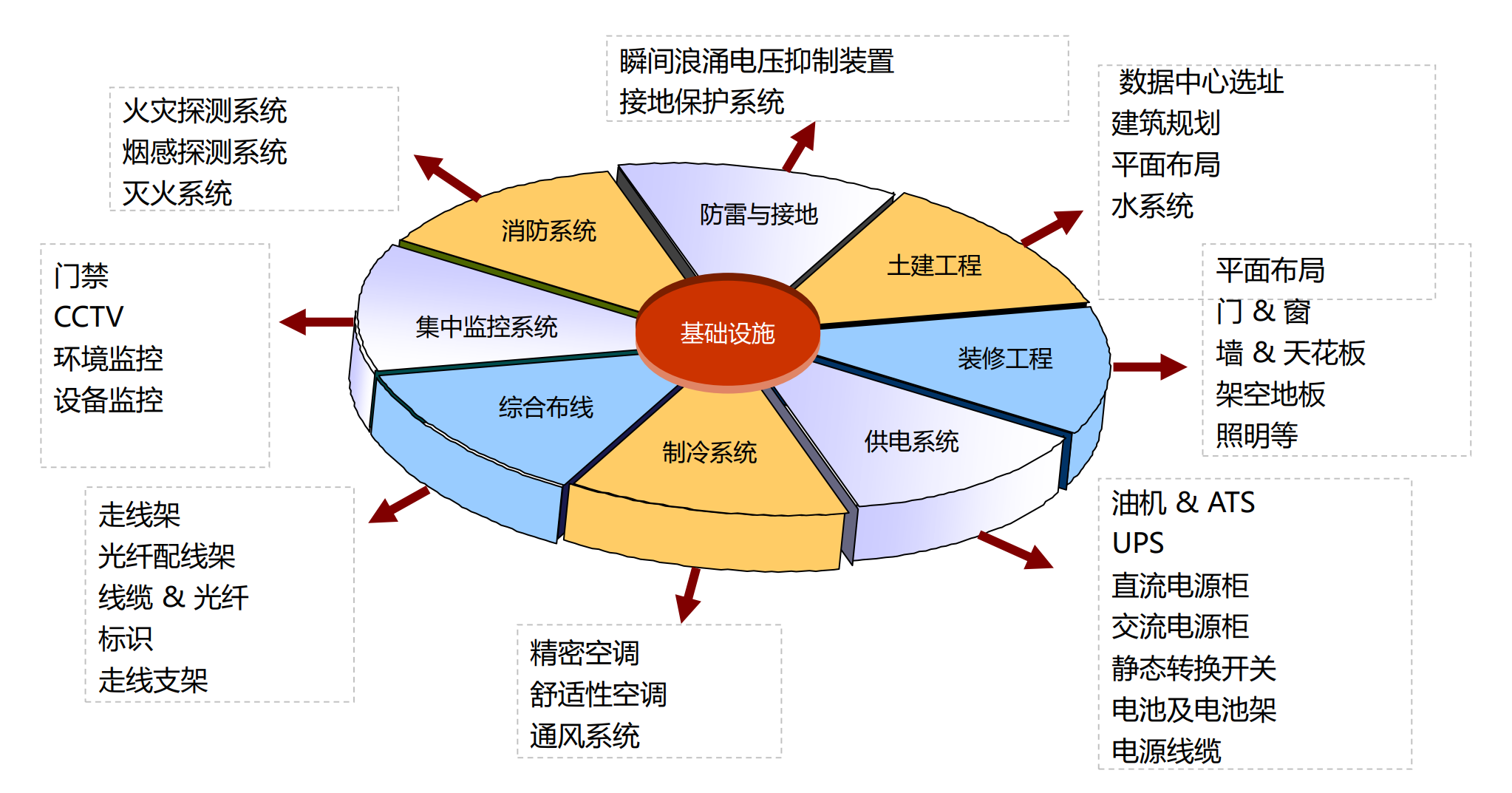 數(shù)據(jù)中心是一整套復(fù)雜的設(shè)施。它不僅僅包括計算機系統(tǒng)和其它與之配套的設(shè)備(例如通信和存儲系統(tǒng)),還包含冗余的數(shù)據(jù)通信連接、環(huán)境控制設(shè)備、監(jiān)控設(shè)備以及各種安全裝置”。而數(shù)據(jù)中心機房為數(shù)據(jù)中心提供關(guān)鍵的基礎(chǔ)設(shè)施支持,為數(shù)據(jù)中心提供 安全、可靠、純凈的電力系統(tǒng)與環(huán)境。